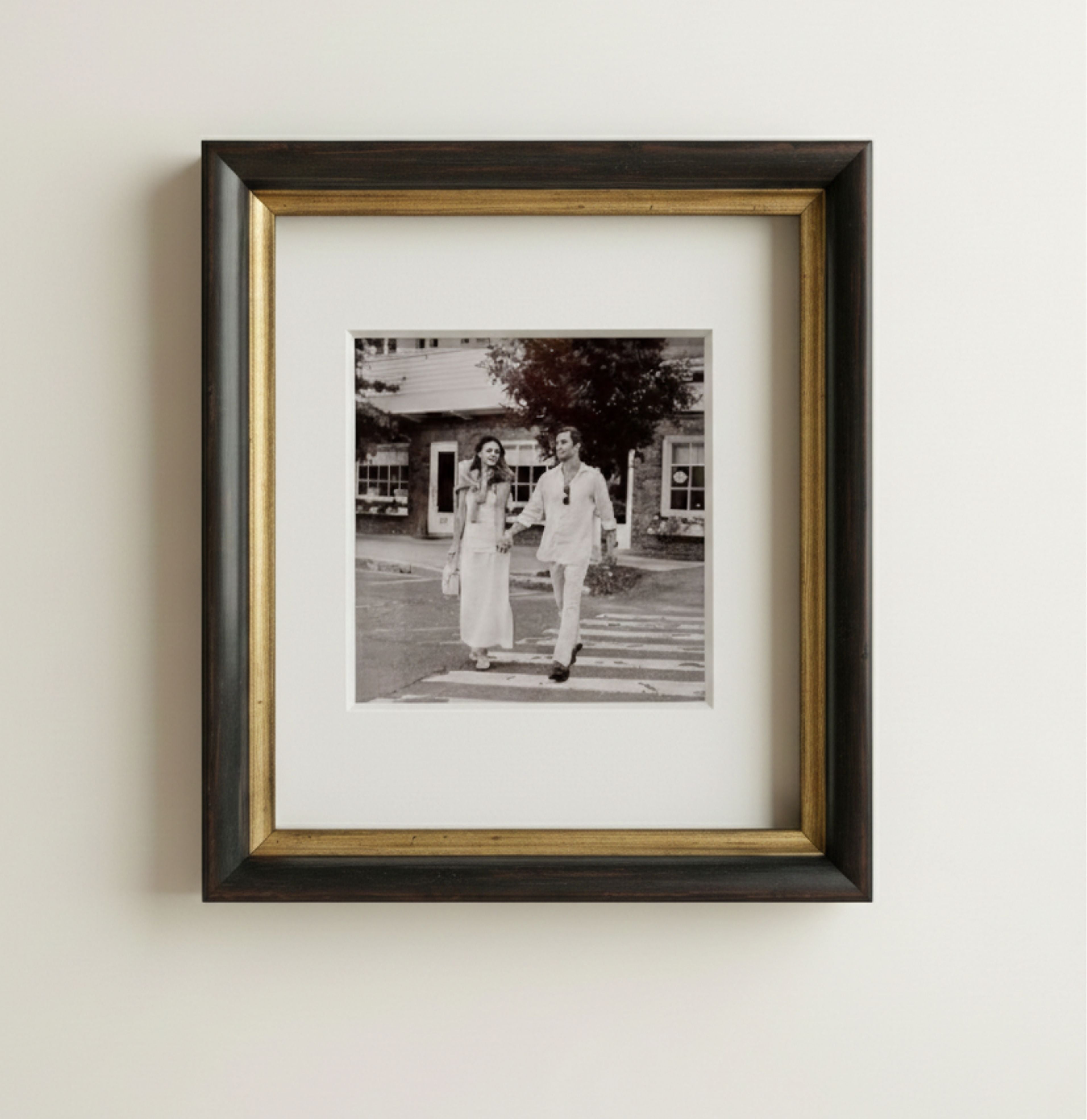 Onze lijsten worden vervaardigd uit Ayous, een gecertificeerd duurzame houtsoort die geliefd is om zijn serene, gelijkmatige structuur en natuurlijke lichtheid. Voor een scherper accent is er onze messing lijst: ingetogen, geborsteld en tijdloos.